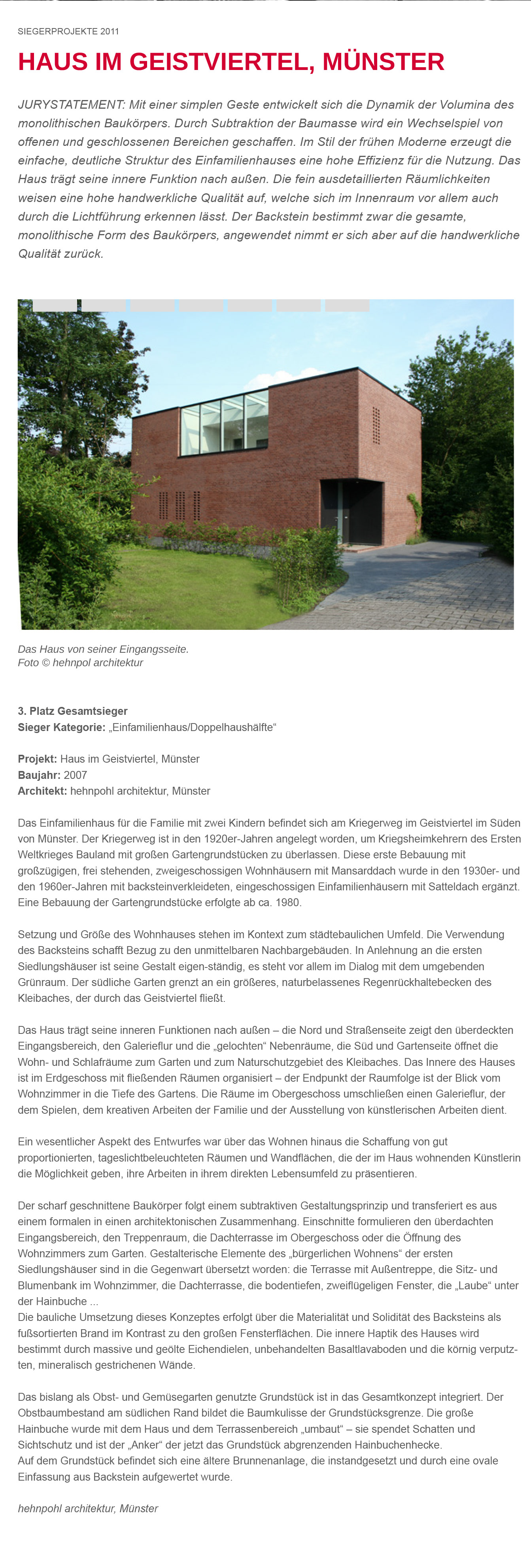 Fritz-Höger-Preis 2011 – Sieger Kategorie „Einfamilienhaus“